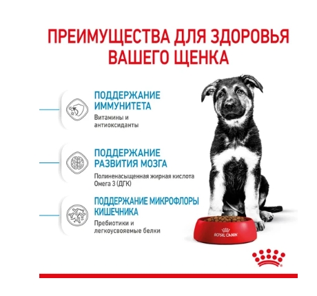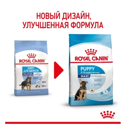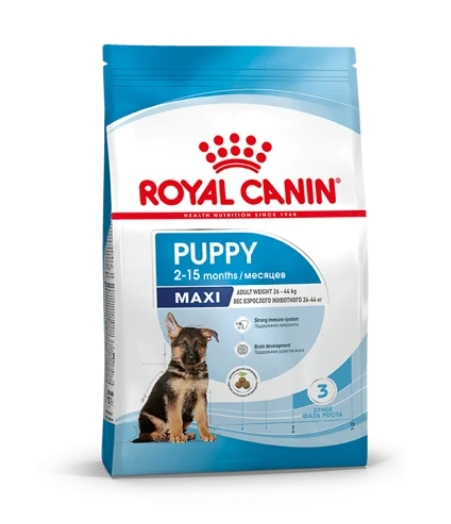Продукт ROYAL CANIN Maxi Puppy создан с учетом потребностей щенков крупных пород собак (вес взрослой собаки от 26 до 44 кг).