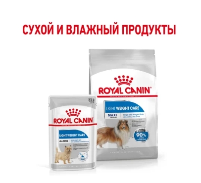 Корм ROYAL CANIN Light Weight Care Maxi, предназначенный для собак весом от 26 до 44 кг, разработан специально для поддержания оптимальной упитанности и активности вашей собаки.