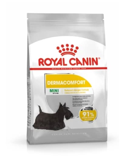Royal Canin Mini Dermacomfort - корм для собак с раздраженной и зудящей кожей. Полнорационный сухой корм для собак мелких размеров (вес взрослой собаки до 10 кг) старше 10 месяцев с раздраженной и зудящей кожей.