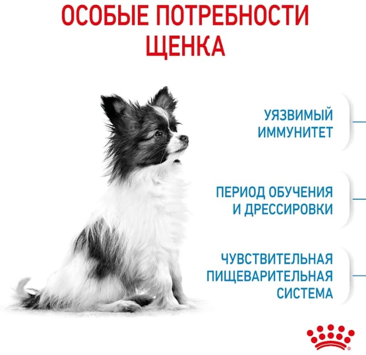 Питание ROYAL CANIN X-Small Puppy предназначено для щенков миниатюрных пород в возрасте с 2 до 10 месяцев. К миниатюрным обычно относят собак, которые, став взрослыми, весят менее 4 кг.