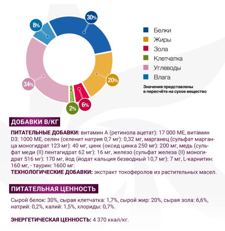 Энергитическая ценность: 4 370 ккал/кг.