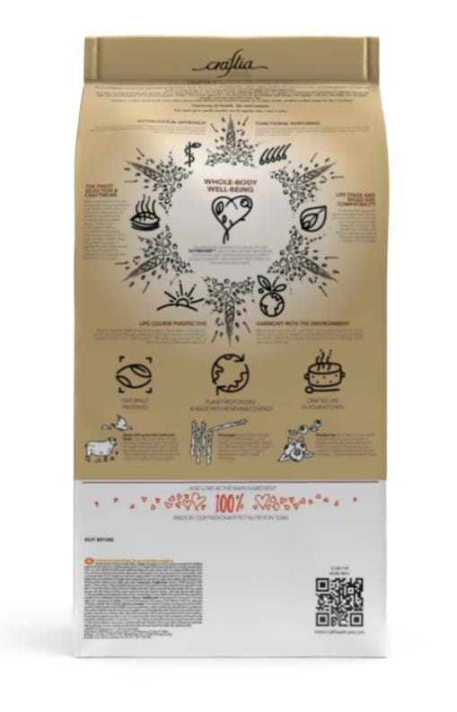 Состав кормов CRAFTIA прозрачен и понятен, отсутствуют скрытые добавки и сомнительные ингредиенты. Все, что заявлено в составе корма, гарантированно присутствует в каждой грануле. Собственный завод, сотни квадратных метров научно-исследовательских лабораторий, первоклассное сырье — все это позволяет создавать тщательно сбалансированный высокобелковый корм корм с холистическим подходом. Все компоненты корма подходят для употребления человеком и не содержат ГМО.