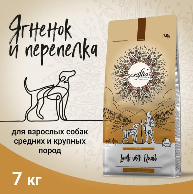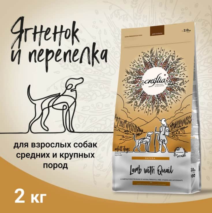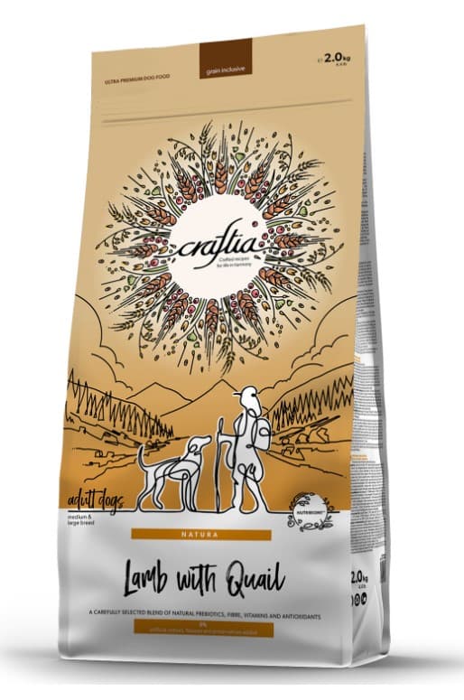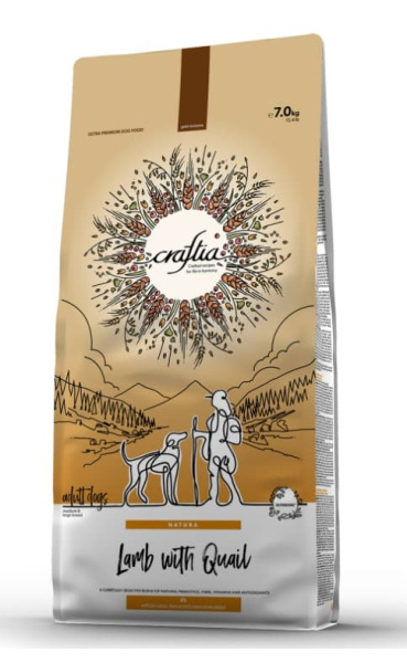 CRAFTIA NATURA сухой корм для взрослых собак средних и крупных пород из мяса ягненка с перепелкой.