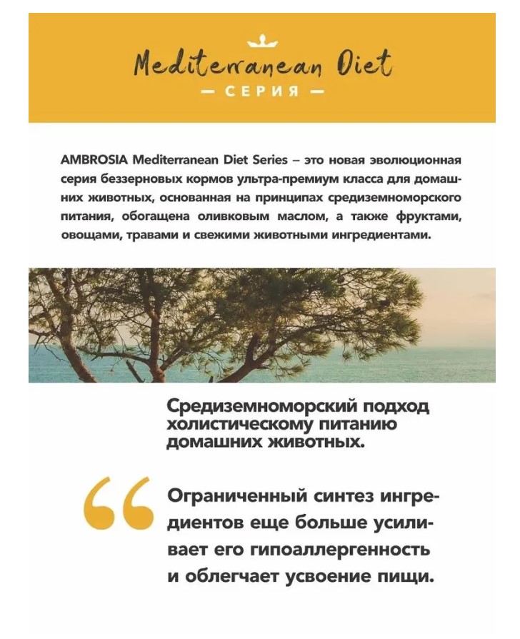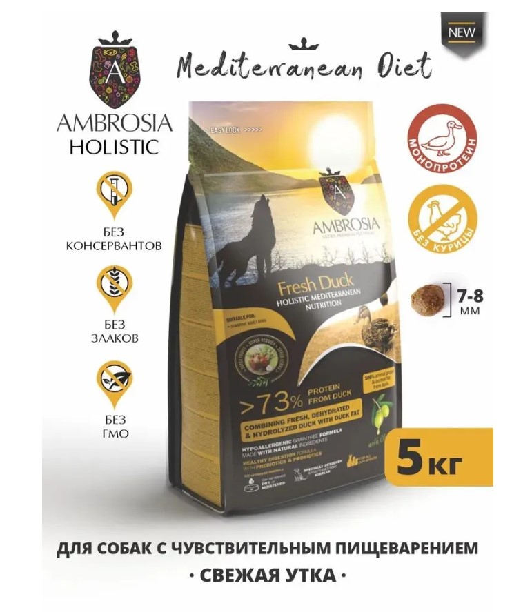 Корм сухой монопротеиновый "AMBROSIA MEDITERRANEAN" для взрослых собак всех пород, свежая утка.