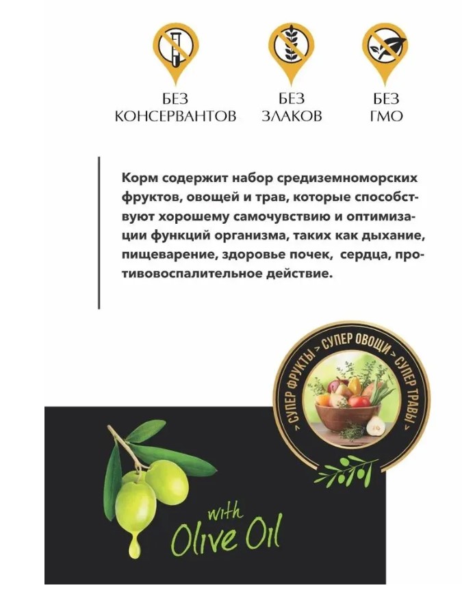 Философия новой Средиземноморской линейки заключается в тщательно отточенной кулинарной эстетике. Отличительной чертой этого подхода является нежный размер гранул, обеспечивающий более деликатное удовольствие, чем в классической серии. Мельчайшие гранулы этого корма помогут сохранить здоровье, уменьшить нагрузку на зубы и обеспечить превосходное питание. Рекомендуем воспользоваться специальными мисками и ковриками для медленного употребления пищи.