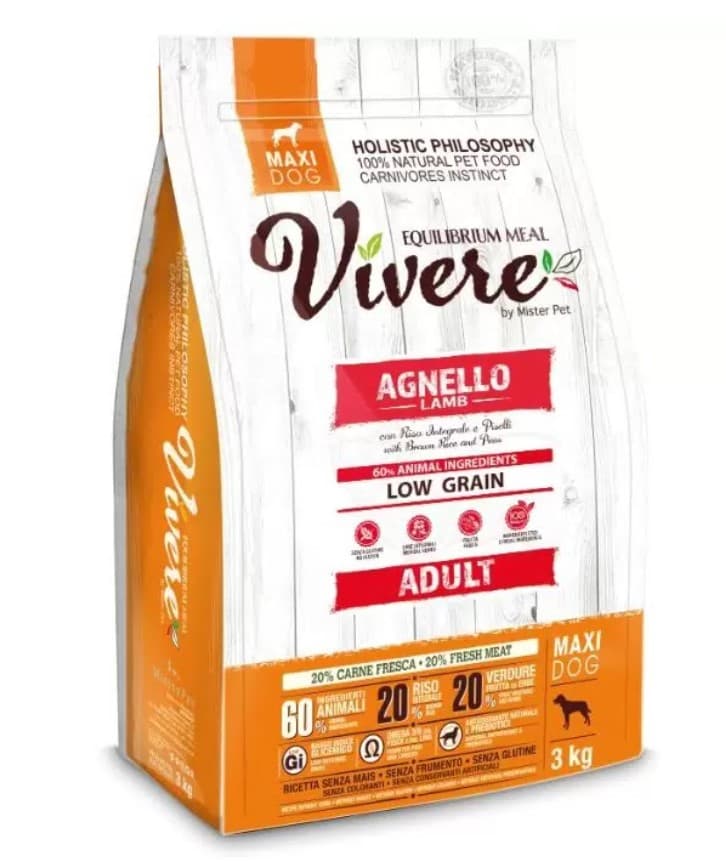 VIVERE DOG ADULT MAXI LAMB (ягненок) - Низкозерновой корм для взрослых собак крупных пород на основе мяса ягненка.