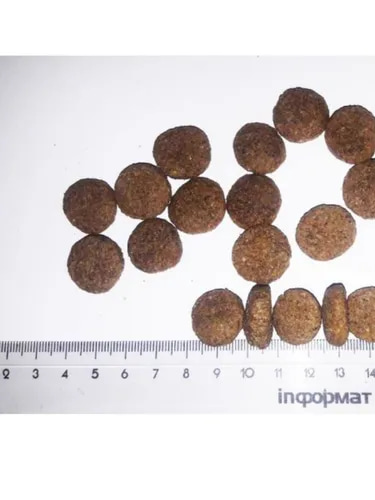 Аналитические компоненты: влажность 8%, белок 26%, сырая клетчатка 2,8%, сырые жиры 14%, сырая зола 7,9%, кальций 1,6%, фосфор 1,2%, Омега-3 0,45%, Омега-6 2,4%.
