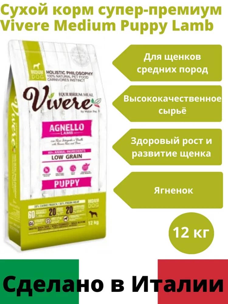 Vivere Puppy Medium (ягненок) - Корм для щенков собак мелких пород с низким содержанием зерна/