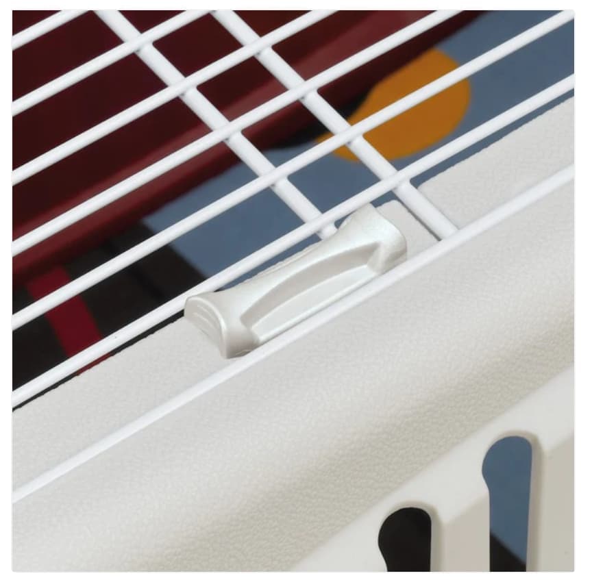 Очень прочная благодаря своей системе фиксации при помощи боковых креплений, эта переноска поставляется с боковыми решетками, которые также обеспечивают отличную циркуляцию воздуха.