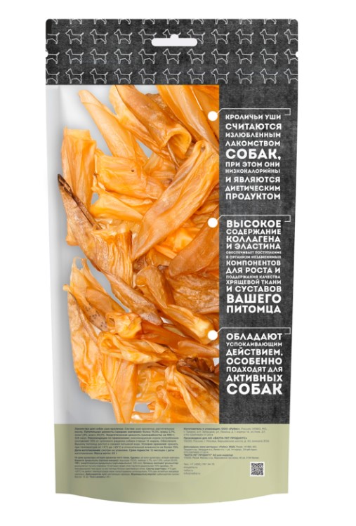 Кроличьи уши считаются излюбленным лакомством собак, при этом они низкокалорийны и являются диетическим продуктом. Высокое содержание коллагеновых и эластиновых волокон обеспечивает поступление в организм незаменимых компонентов для роста и поддержания качества хрящевой ткани суставов Вашего питомца. Обладают успокаивающим действием, особенно подходят для активных собак.